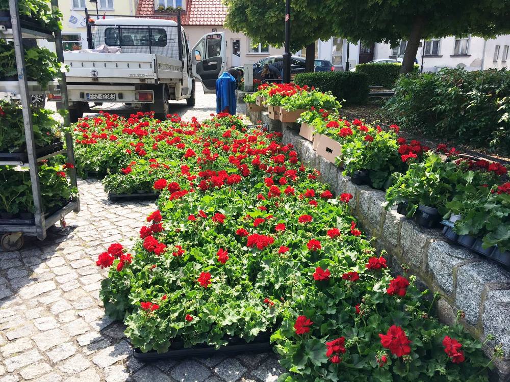 Pniewy wraz ze zbliżającym się latem nabierają żywych kolorów. W dniu dzisiejszym na terenie miasta Centrum Integracji Społecznej "Ostoja" pracowało przy nasadzeniach kwiatów przy płycie Rynku w Pniewach oraz głównej krzyżówce.