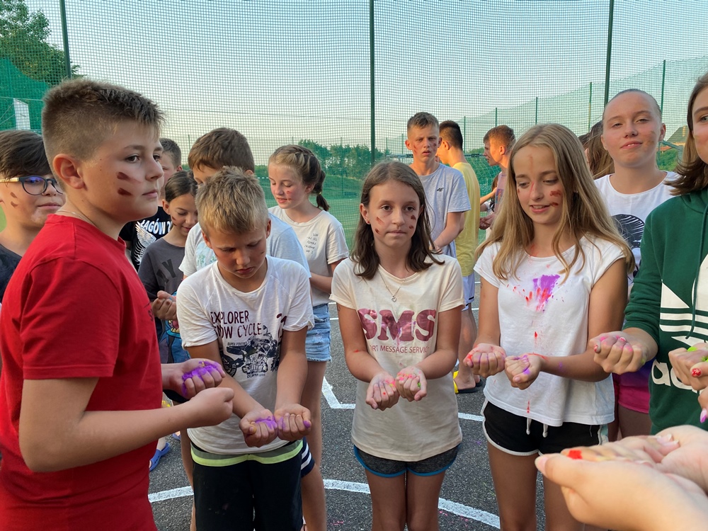 Wdzydze powitały nas piękną słoneczną pogodą dlatego też oprócz Skansenu powędrowaliśmy nad jezioro, gdzie mogliśmy wypocząć i popluskać się na tamtejszym kąpielisku. Hitem tego dnia były odwiedziny Neptuna oraz Festiwal kolorów i bitwa na balony z wodą.
