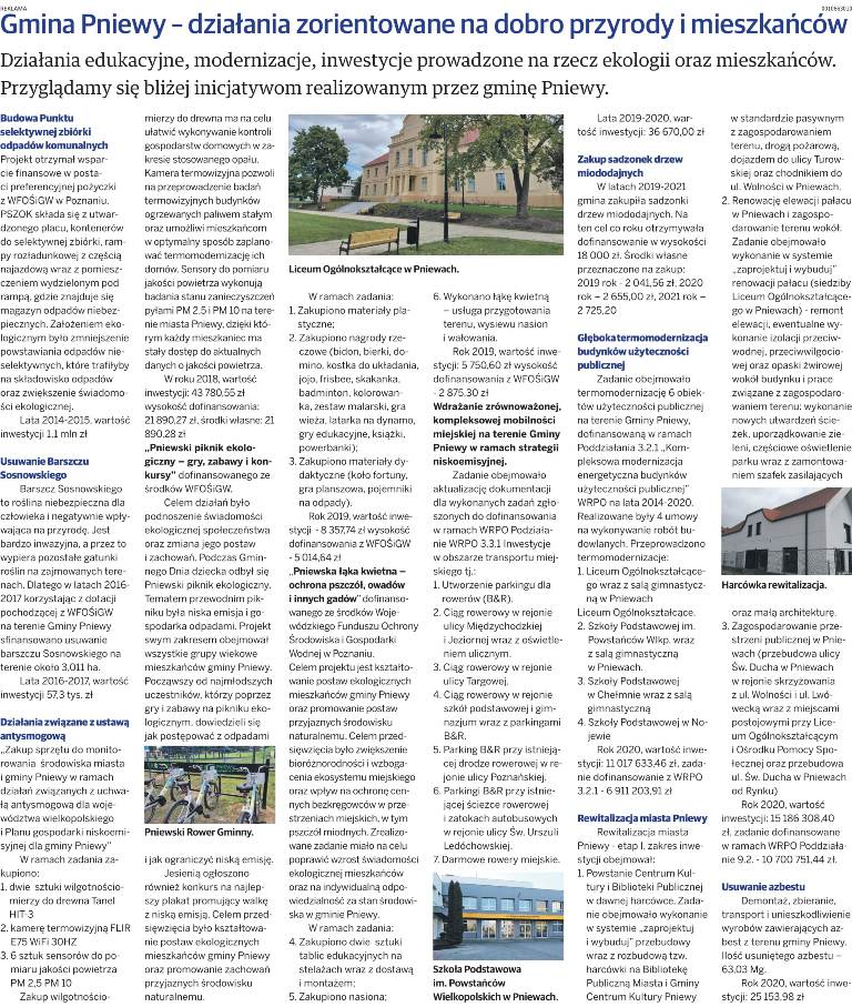 Gmina Pniewy już od wielu lat stawia na działania proekologiczne. Zostało przeprowadzonych wiele działań i inwestycji ukierunkowanych na ochronę środowiska. Więcej informacji w poniższym artykule.