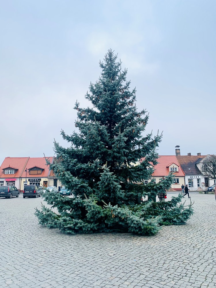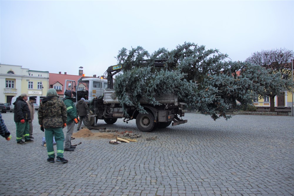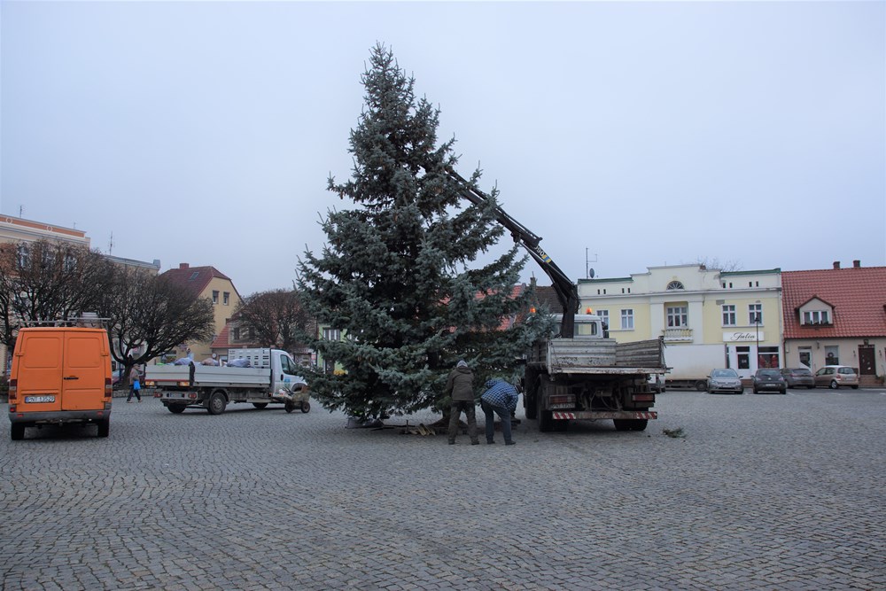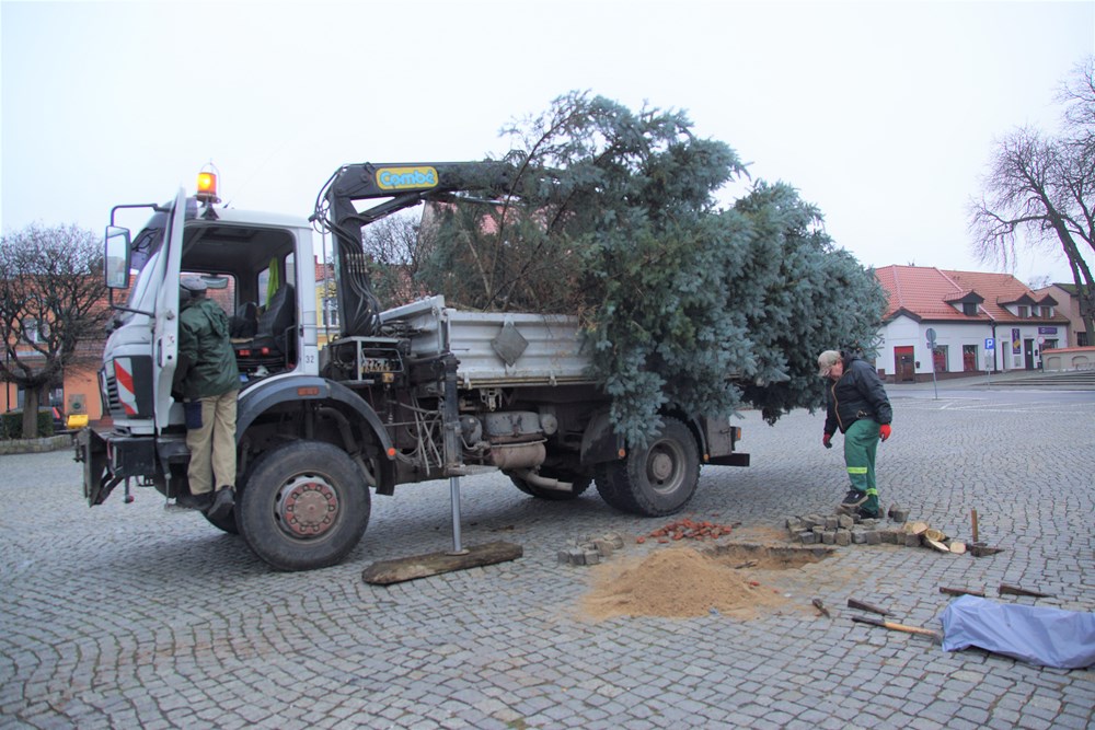 Na pniewskim rynku pojawila się choinka - to znak, że święta coraz bliżej.