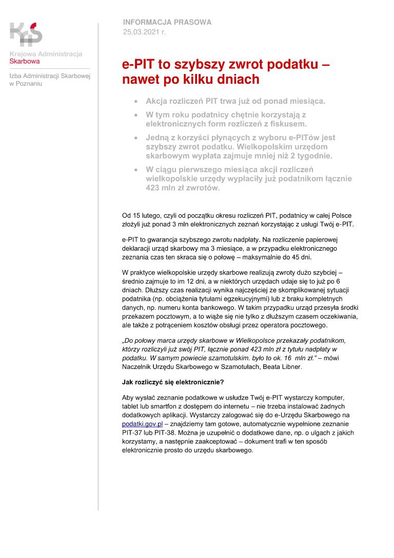 e-PIT to szybszy zwrot podatku- nawet po kilku dniach