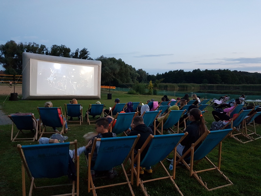 W piątkowy wieczór na terenie Łazienek Miejskich odbyło się kolejne filmowe spotkanie. Zebrana publika na leżakach fascynowała się filmem Park Jurajski.