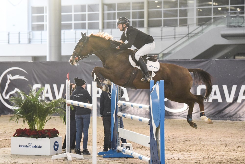 Łukasz Brzóska na koniu Quicklensky wygrywa konkurs potęgi skoku podczas zawodów międzynarodowych Cavaliada w Poznaniu. Dobre przejazdy odnotował też na klaczy Jernilla wł Rafał Loba oraz na koniach Dark’Ann i Charlie 254.