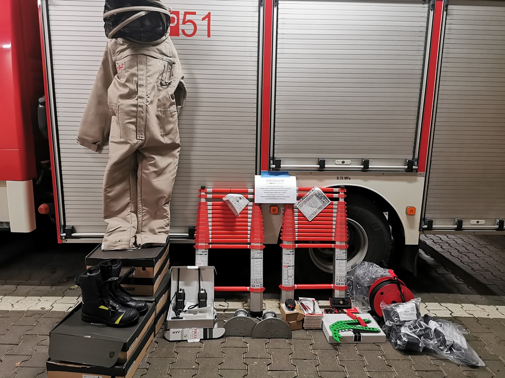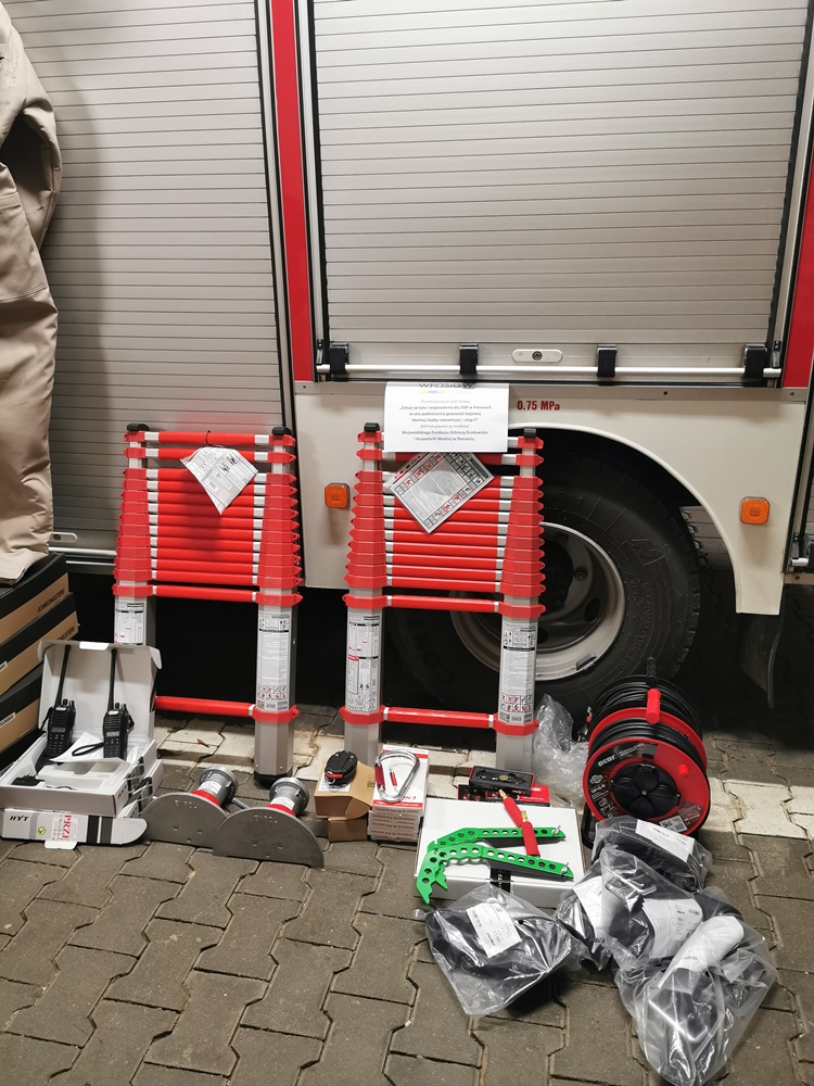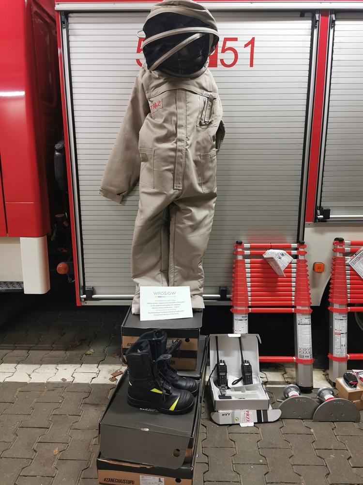 Ochotnicza Straż Pożarna w Pniewach wzbogaciła się o sprzęt i wyposażenie (kombinezon ochronny pszczelarski na szerszenie z rękawicami – 1 szt.; sygnalizator bezruchu – 2 szt.; pas strażacki z zatrzaśnikiem – 5 kpl.; nóż ratowniczy Rescue Columbia – 6 szt.; piła do cięcia szyb ręczna SAWCUT – 2 szt.; przedłużacz na zwijadle – 2 szt.; trójnóg ratowniczy TM 13 (dla ludzi) – 1 szt.; kurtyna wodna 52 – 2 szt.; radiotelefon HYT PD 565 – 2 szt.; buty strażackie Winner Basic – 6 par; środek pianotwórczy Roteor M 3% 200 kg – 2 opak.; drabina przenośna teleskopowa Telemaster – 2 szt.) zakupione w ramach projektu pn.: „Zakup sprzętu i wyposażenia dla OSP w Pniewach w celu podniesienia gotowości bojowej lokalnej jednostki ratowniczej – etap II” dofinansowanego z Wojewódzkiego Funduszu Ochrony Środowiska i Gospodarki Wodnej w Poznaniu. Beneficjentem projektu jest OSP w Pniewach. Całkowita wartość projektu to 24.700,00 zł. Dofinansowanie z WFOŚiGW wynosi 19.000,00 zł.