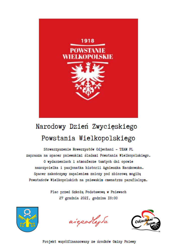 Stowarzyszenie Rowerzystów Odjechani – TEAM PL zaprasza na wspólny spacer pniewskimi śladami Powstania Wielkopolskiego.