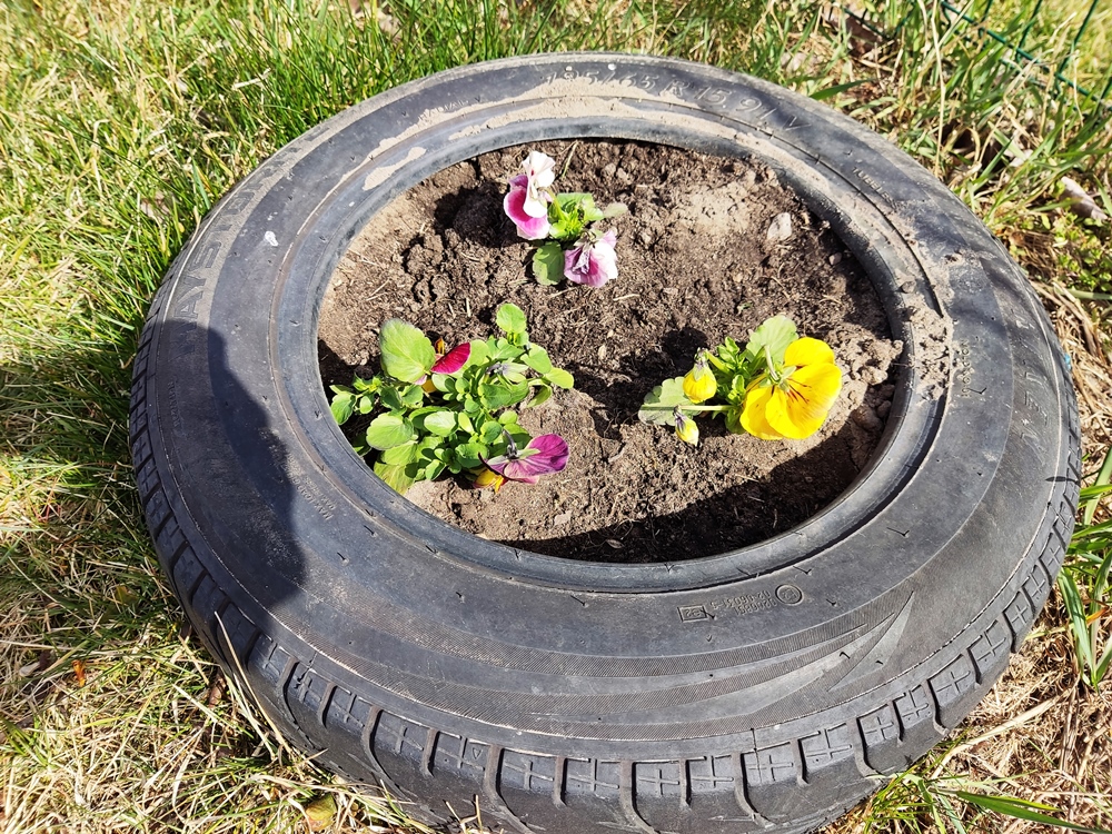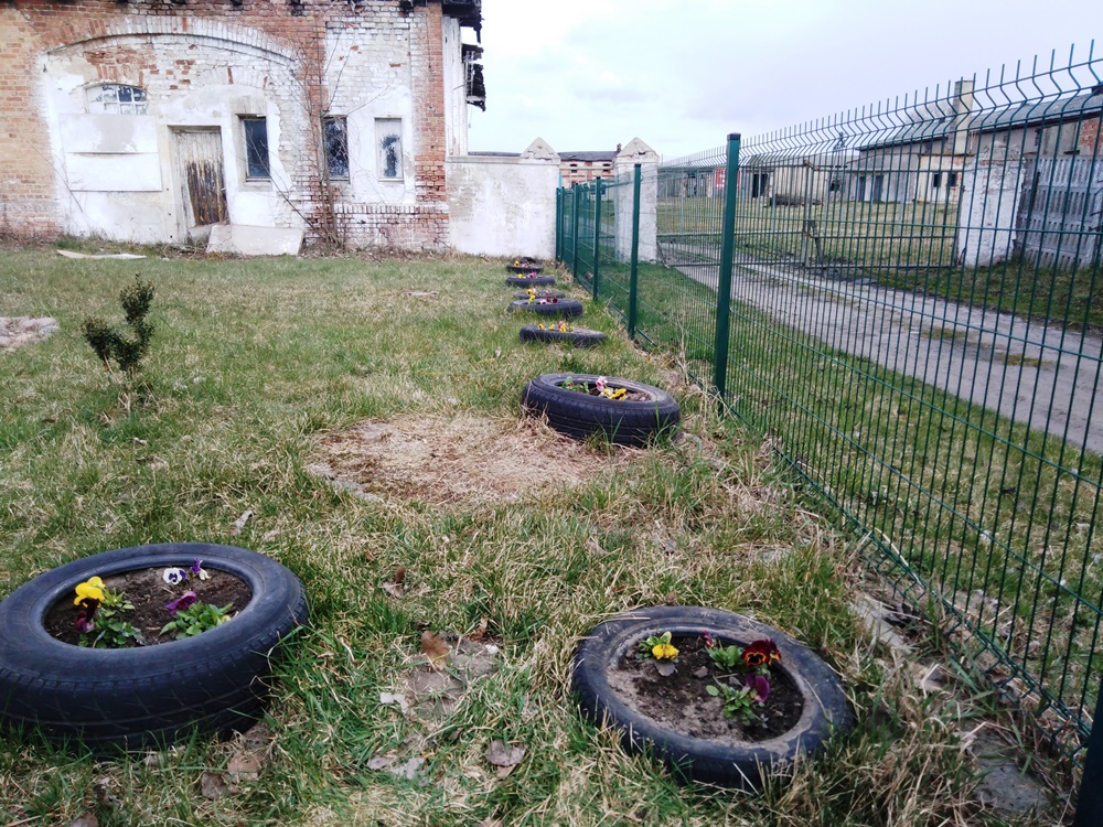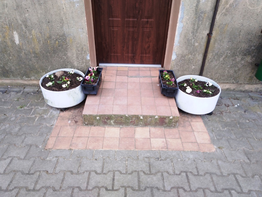 Pod świetlicą w Chełmnie mamy już wiosenną atmosferę, przed budynkiem pojawiły się bratki.